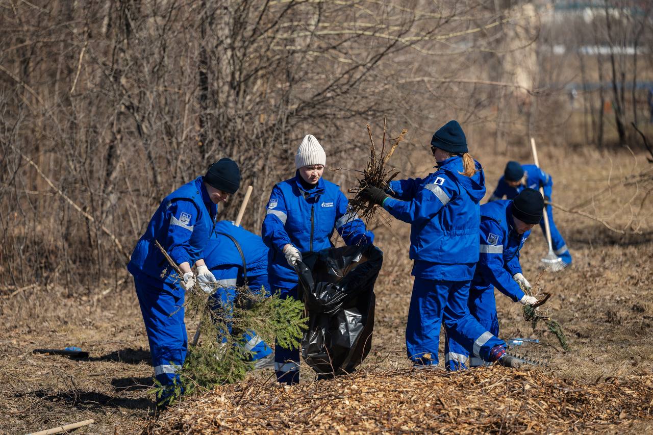 Участники субботника очистили территорию от природных отходов, собрали сухие ветки и листья и облагородили берег ручья. В этом году работы также охватили новую зону отдыха с сибирскими елями, созданную компанией к 80-летию Великой Победы.